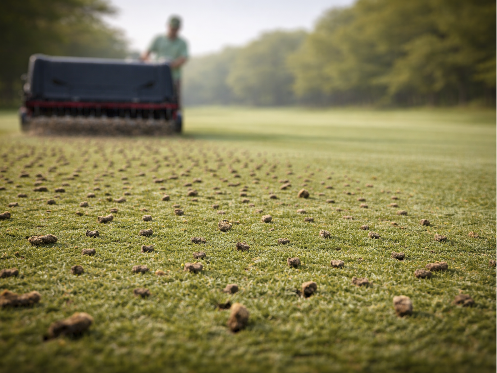 Aerifizieren ist eine wichtige Pflegemaßnahme auf jedem Golfplatz. Es sorgt für eine bessere Belüftung des Bodens, fördert das Rasenwachstum und verhindert Bodenverdichtung. Dabei werden Löcher in den Rasen gestochen und mit Sand gefüllt. Diese Arbeiten sind nur bei trockenem Wetter möglich und verbessern die Wurzeltiefe sowie die Wasserableitung.